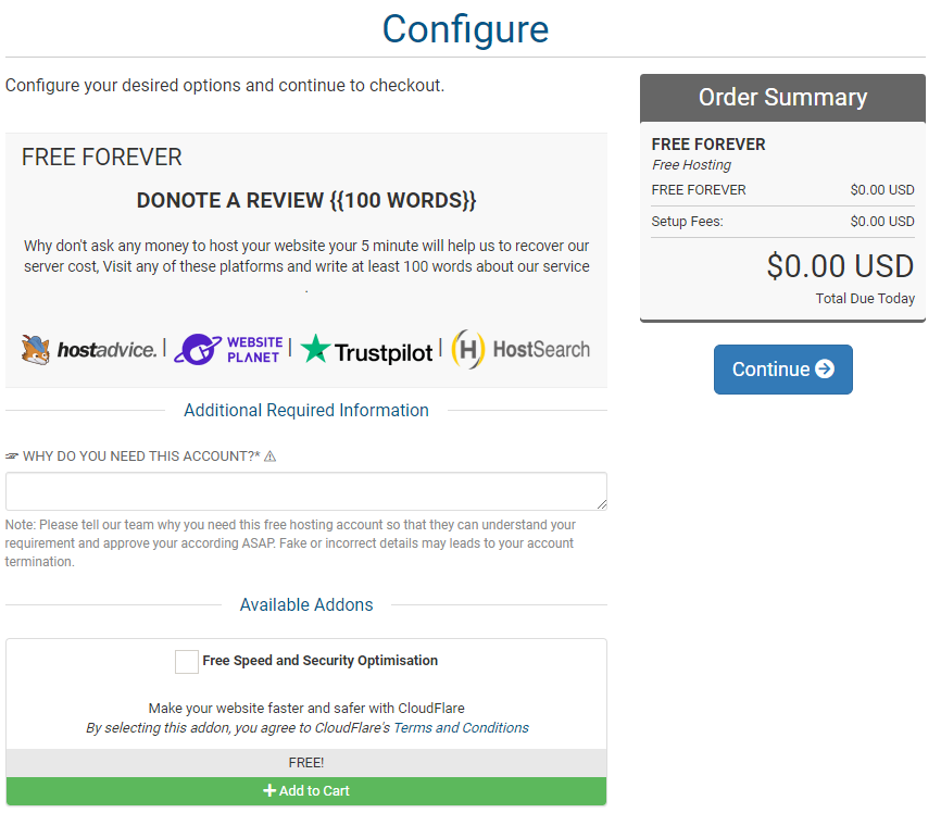 0달러 인거를 확인하고 Continue 버튼을 눌러 줍니다.