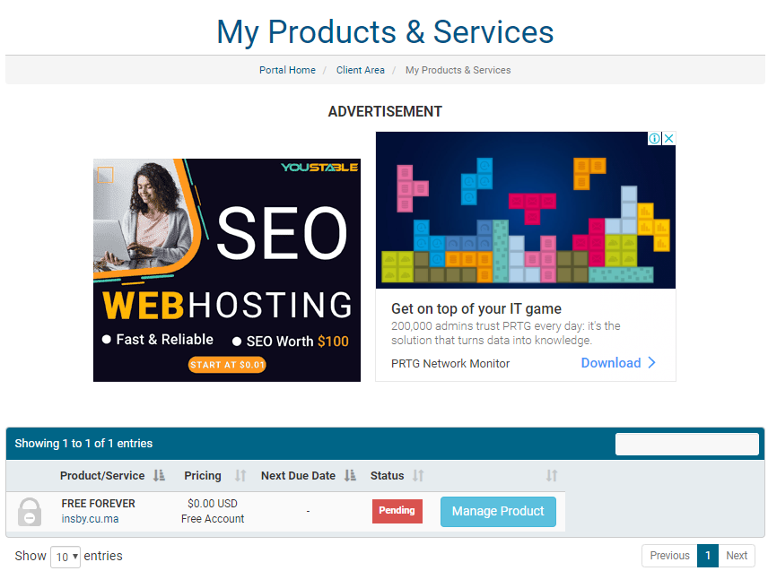 우선 Continue To Client Area를 들어가 봅니다.