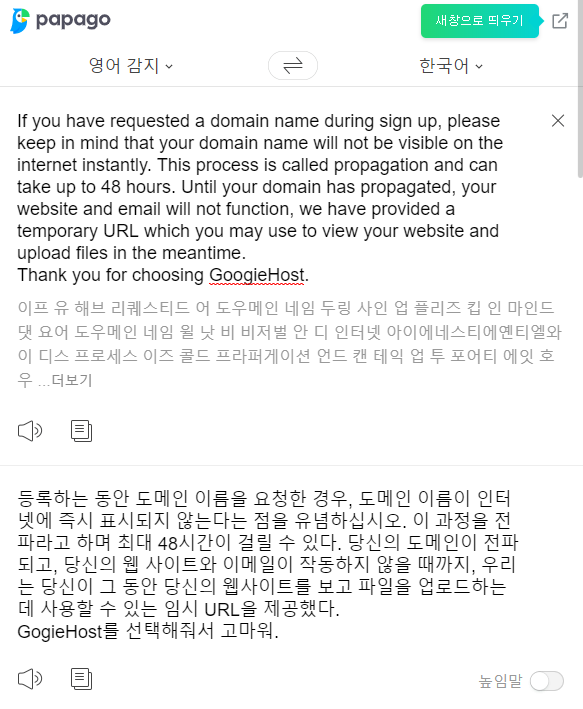 오늘 GoogieHost 승인이 완료 되었습니다.
