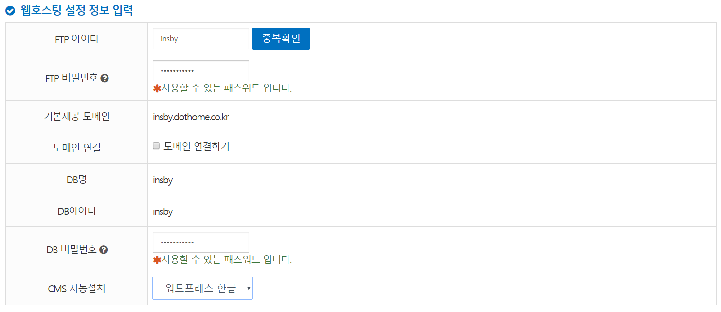 이후 insby.dothome.co.kr 로 접속을 하니 아래와 같이 접속이 되네요.^^